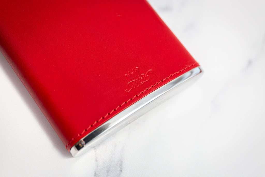 Produced by Marlborough of England by hand in our workshop in England by our master craftspeople. The 4oz Hip Flask is hand covered in the traditional way, producing the stunning 100% piece. Only using the finest polished stainless steel and Leather to produce our English Hip Flasks we are the only company to offer a lifetime Guarantee showing that our 4oz Hip Flasks are well made and will last for years to come. The screw-top has our signature MW Logo on the top and is fixed to a flexible brass chromed hinge to prevent it from being lost. This stunning Luxury Leather 4oz Hip Flask will fit perfectly into the outside pocket of your parker or blazer. They are great to use on days out camping and festivals and really any country or city location. Marlborough of England only makes Luxury English Hand Made products so you can feel safe in the knowledge that you are Buying Totally British.