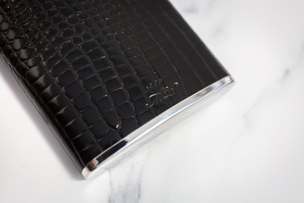 Produced by Marlborough of England by hand in our workshop in England by our master craftspeople. The 6oz Nile Hip Flask is hand covered in the traditional way, producing the stunning 100% piece. Only using the finest polished stainless steel and Leather to produce our English Hip Flasks we are the only company to offer a lifetime Guarantee showing that our 6oz Nile Hip Flasks are well made and will last for years to come. The screw-top has our signature MW Logo on the top and is fixed to a flexible brass chromed hinge to prevent it from being lost. This stunning Luxury Leather 6oz Nile Hip Flask will fit perfectly into the outside pocket of your parker or blazer. They are great to use on days out camping and festivals and really any country or city location. Marlborough of England only makes Luxury English Hand Made products so you can feel safe in the knowledge that you are Buying Totally British.