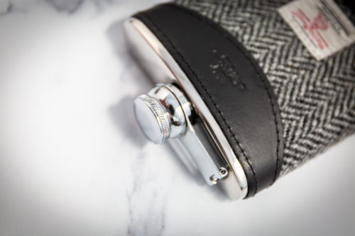 6oz Hip Flask Black Harris Tweed by Marlborough of England