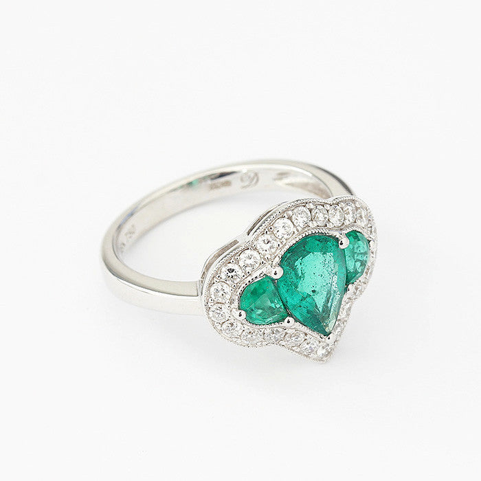 Emerald And Diamond Unusual Cluster Ring In 18ct White Gold