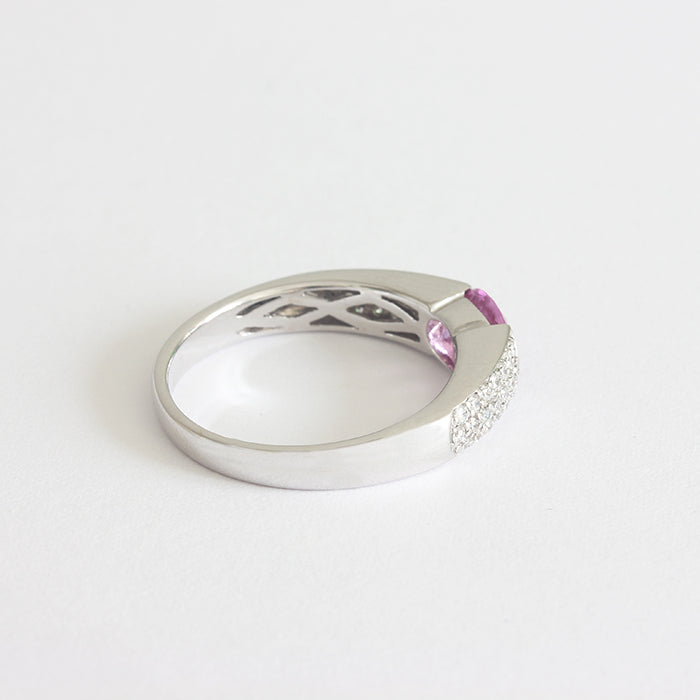 Pink Sapphire and Diamond Ring in 18ct White Gold